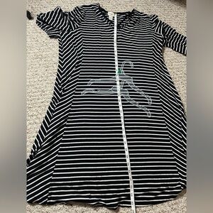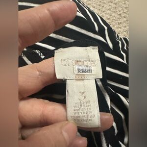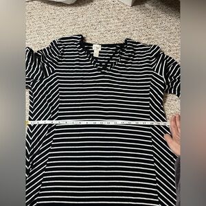 Chico’s Black & White Stripe 3/4 Sleeve V-Neck MIDI Dress Size 3