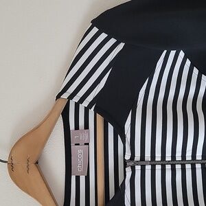 Chico's Black White Stripe Ponte Jacket Size Medium