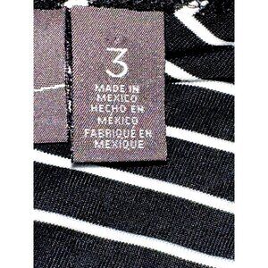 Chicos Black White Striped Asymmetrical Long Sleeve Tunic Dress Modern Chic Size