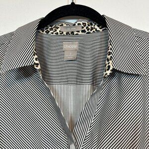 Chicos Black & White Striped Blouse with leopard detailing Size 3
