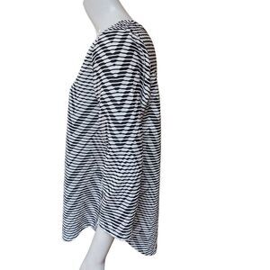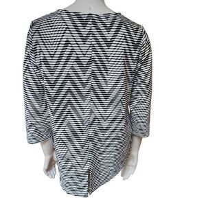 Chico's black and white striped chevron design 3/4 sleeve top with a slit in the back.