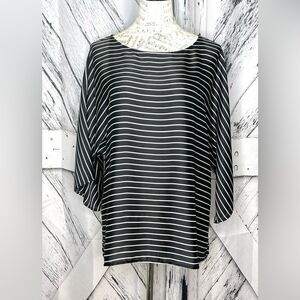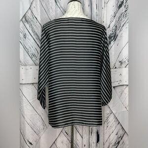 Chico’s Black White Striped Dolman Sleeve Blouse Top 10/12