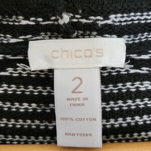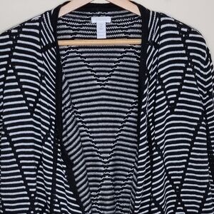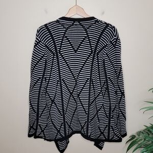 Chico's | Black White Striped Geometric Print Open Front Cardigan Sweater.