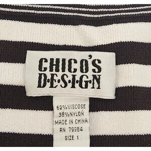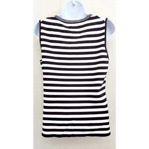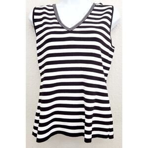 Chico's Black White Striped V Neck Sleeveless Top 1 Medium Lightweight Stretch