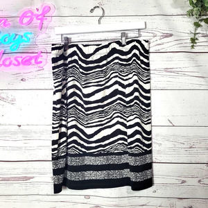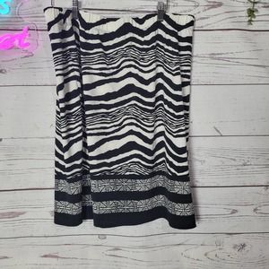 Chico's Black White Zebra Tribal Print Elastic Waist Straight Pencil Skirt Sz 3
