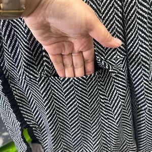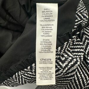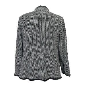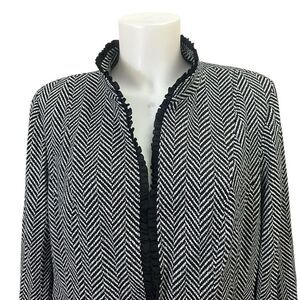 Chico's Black White Herringbone Ponte Blazer Jacket Ruffled Trims sz 2 Medium
