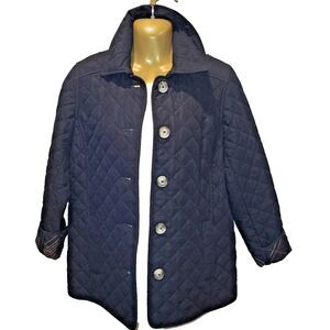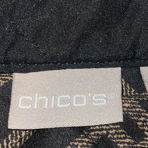 Chico's Black X-Small Quilted Jacket Plaid Lining Collared Buttons Lightweight