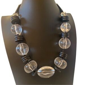 This necklace features striking black and clear beads, perfect for adding a touch of sophistication to any outfit. Its unique design makes it a standout piece for any jewelry collection.