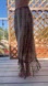 Chico's midi skirt with a black and cream pattern. Features a unique fringe hem. Perfect for feeling comfy on stylish outings.