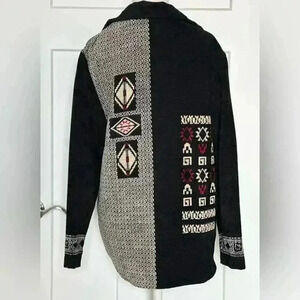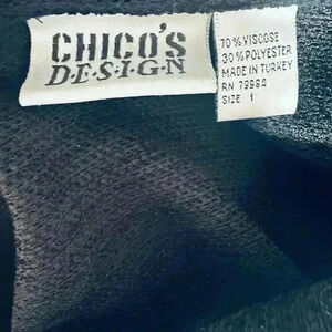 Chico’s Black and Patterned Viscose-Polyester Full Zip Jacket Size M