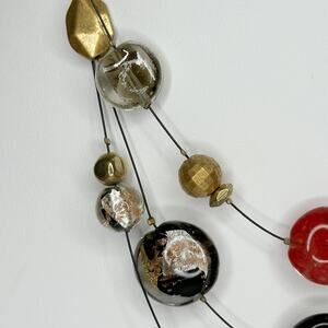Chico's Black and Red Beaded Triple Strand Wire Gold Tone Necklace ✨