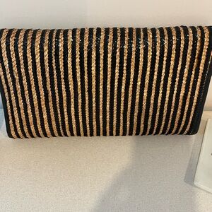 Chico's crossbody bag with a striking black and tan design. Features bold embellishments for a unique look. Perfect for versatile styling.