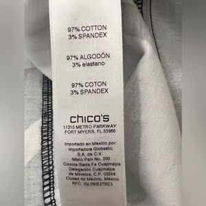 Elevate your style with this chic black and white abstract jacket from Chico's. Perfect for any occasion, this jacket offers a modern and sophisticated look. Open front zipper pockets unlined,, generous fit, in very good condition. This is Chico’s size 2 which is Large.