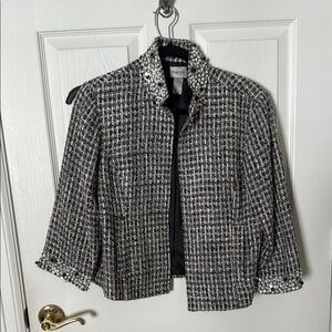 Chico's Black and White Blazer open style Houndstooth size 1 with embellishment