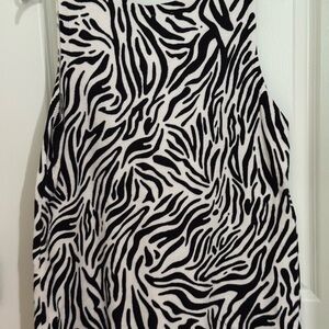 Embrace a bold look with this sleeveless tank top from Chico's, featuring a striking black and white zebra print. The boxy style and relaxed fit make it a versatile addition to any wardrobe, perfect for casual outings or making a statement.