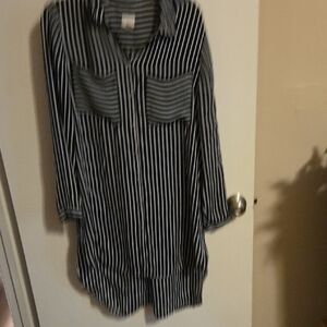 This elegant dress from Chico's features a notched collar and long cuffed sleeves, perfect for both casual and work settings. The black and white stripes add a classic touch to its buttoned shirt style, making it a versatile addition to any wardrobe.