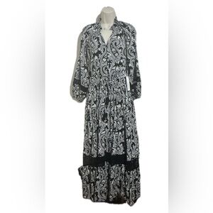 Chic long sleeve dress with a striking paisley pattern. Features a classic black and white color scheme. Perfect for versatile styling. Brand New with tags.