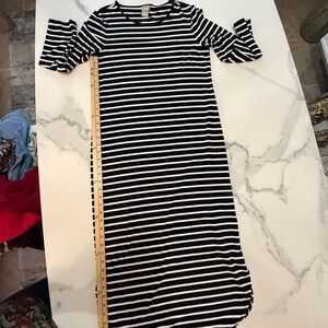 Chico’s black and white striped maxi dress perfect for any occasion. The classic design offers a timeless look. Size Chico’s 0 which translates to a 4/6 regular. Excellent condition.