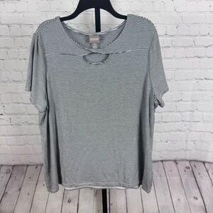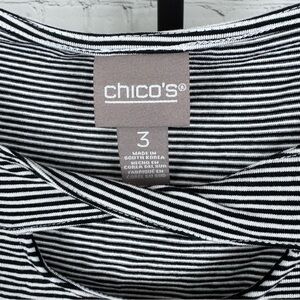 Chico’s top size 3 (XL). Black and white striped top with twisted neck detail. Short sleeves. Great condition. Smoke free home.
