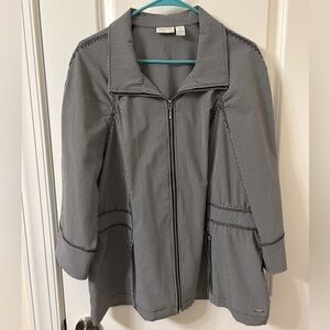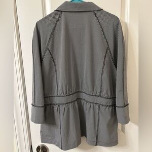 Experience the perfect blend of style and functionality with Chico's black and white utility jacket. This mid-length jacket offers a relaxed fit and a clean design, making it an ideal choice for everyday wear. Crafted with attention to detail, it ensures both comfort and a chic appearance.