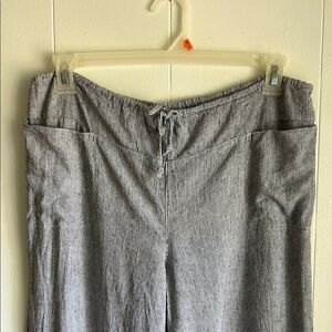 Chico's Black and White Wide Leg Linen Blend Coastal Lagen Look Pants Sz 12 or L
