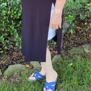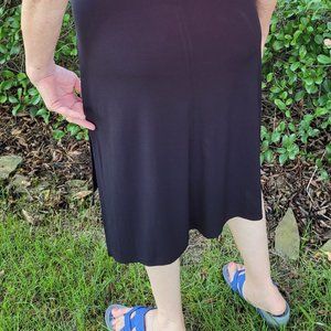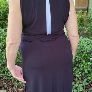 Black sheath over white, one-piece dress; slits on side. Chico's like new (worn once). Stretch material but excellent quality.