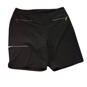 These chic black shorts from Chico's feature a high waist and a tailored fit, offering a sleek and modern silhouette. Crafted from a structured fabric, they maintain their shape beautifully, making them a versatile addition to any wardrobe.