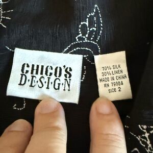 Chico's Black/White Art Silk/Linen Button Down Shirt Chico's 2 Large