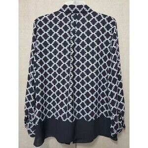 This is a Chico's Black/White Geo Chain Print Long Sleeve Button-Up Tunic Size 1 Medium