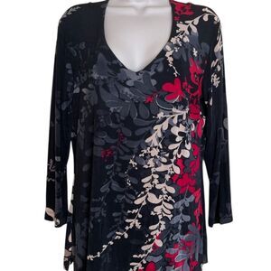 Chico's Black and Red Asymmetrical Blouse Silky super soft Sz 1
