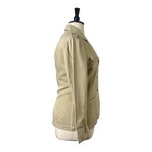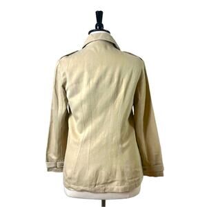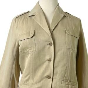 Chico’s Blazer 3 Button Front Peak Collar Silk Linen Tan Size 2 Women’s 12