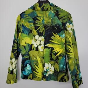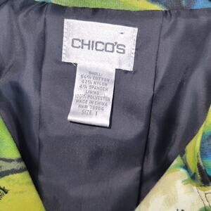 Chico's Blazer Colorful Structure Size 1 Medium Floral Print Green Blue Pockets