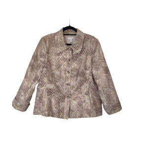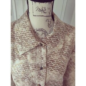 Chico's Blazer Jacket Metallic Gold Silk Blend Long Sleeve Collared Size L