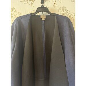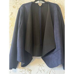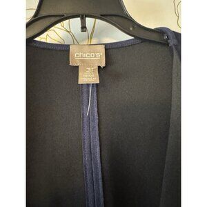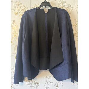 Chicos Blazer Jacket Size 3 Extra Large Faux Suede Open Front Navy Blue 078