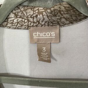 Chico’s Blazer Jacket Size XL Geometric abstract Print Open Front Knit Career
