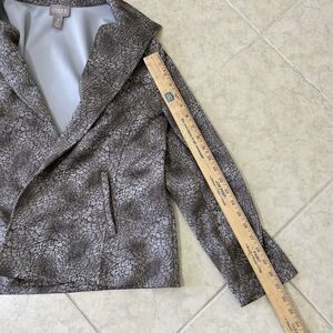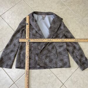 Chico's Blazer Jacket Size XL Brown gray Geometric abstract Print Open Front Knit Career Office travel boho beachy.
