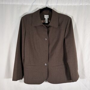 Chico's Blazer Jacket Women's 8 Solid Brown 3 Button Front Pullover Office Work
