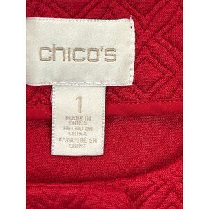 Chicos Blazer Jacket Womens Size 1 Red Textured Knit Snap Closure