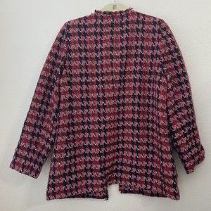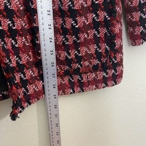 Chico's Blazer Jacket Womens Size 2 Large Tweed Red Black Open Front