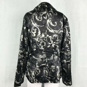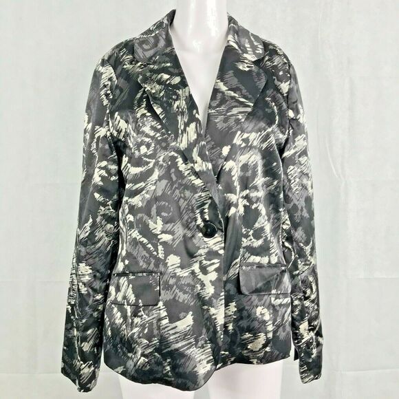 Chicos Blazer Jacket Womens Sz 2 12 Large Black Pattern Tafetta Silk Cotton