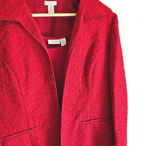 Chico's Blazer Set Crinkle Texture With Tank Red Women's Size 2 (Large)