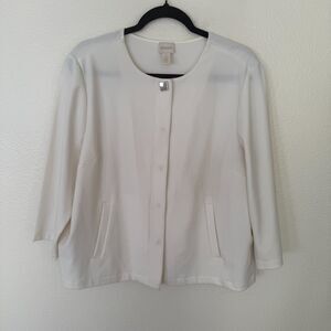 Chico's Blazer Square-Cut Crepe Jacket Size 3/XL Ivory Career Office Business