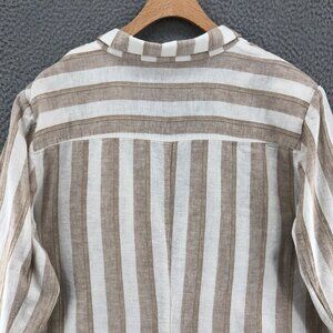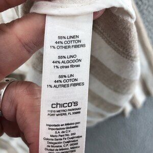 Chicos Blazer Womens 3 US 16 Ivory Striped Linen Pockets Button Up 3/4 Sleeve