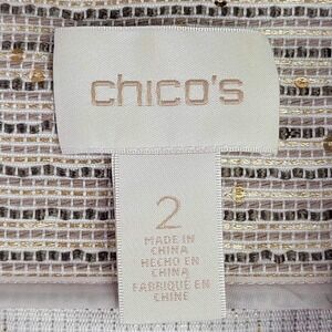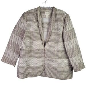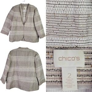 Chicos Blazer Women’s Neutral Sequin Jacket Size 2 Large Textured Striped