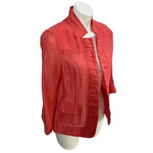 Chicos Blazer Womens Small Orange Linen Jacket Work Office Career Casual