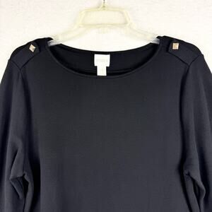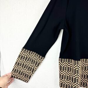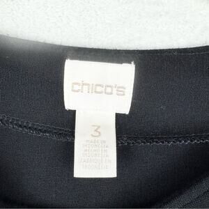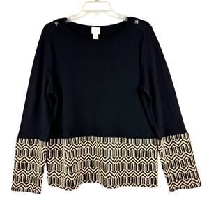 Chico's Blocked Jacquard Long Sleeve Textured Tab Shoulder Top Black Sz 3 US XL