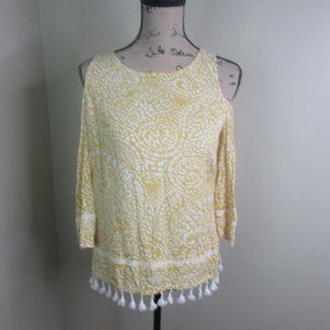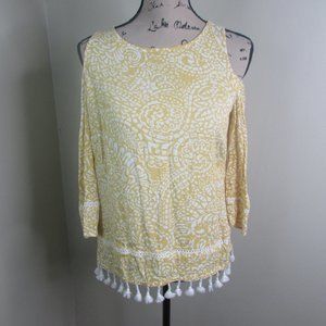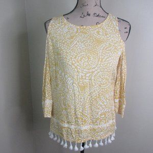 Chico's Blouse 0 Yellow Cold Shoulder 3/4 Sleeve