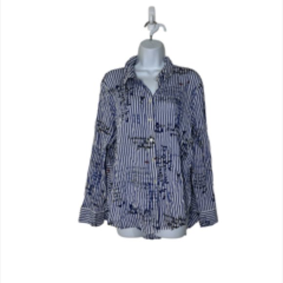Blue and white stripe blouse. Chico size 2. See size conversion chart