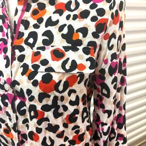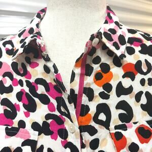 Chicos Blouse, Button Up, Animal Print, Pink White Black, Women’s Size 6,