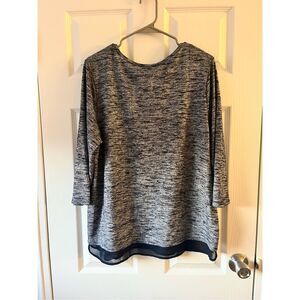 Chico's Blouse Large Size 2 Women's Navy Sparkle Half Sleeve Crew